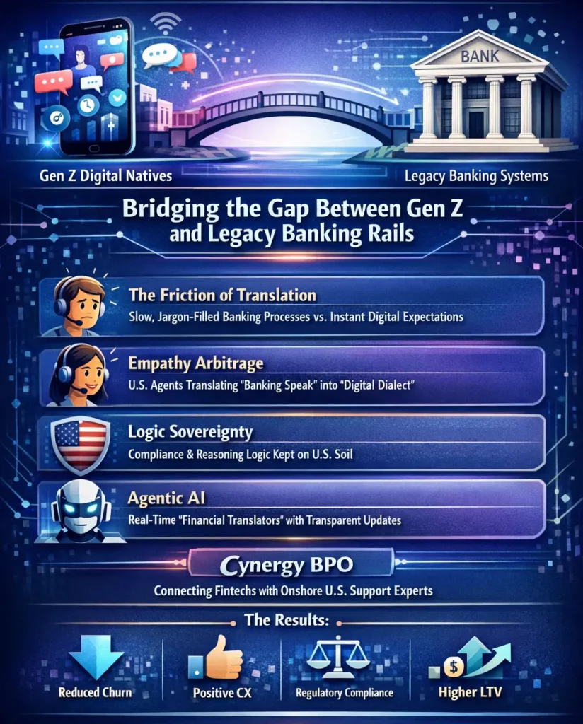 The fintech landscape of 2026 is defined by a growing divide: the sophisticated digital expectations of Gen Z consumers versus the aging, legacy rails of the US banking system. For fintech support services, the primary role has shifted from simple transaction management to “Digital Translation.” Gen Z and Alpha consumers, who have never known a world without instant gratification, find the multi-day delays of ACH transfers or the complexities of wire-routing numbers fundamentally confusing. This creates a “Friction of Translation” that can lead to high churn and negative social sentiment. This article explores how onshore BPO partners are helping fintechs bridge this gap by leveraging Empathy Arbitrage—employing domestic agents who share the same cultural DNA and digital context as their customers. These agents act as “Financial Translators,” using Agentic AI to provide the real-time, transparent updates that Gen Z demands. By maintaining Logic Sovereignty on US soil, fintechs can ensure that these complex interactions remain compliant and brand-aligned. Cynergy BPO is at the forefront of this shift, identifying the US-based BPO providers who can deliver the secure, sovereign, and high-performance support that 2026 fintechs need to win the next generation of consumers.